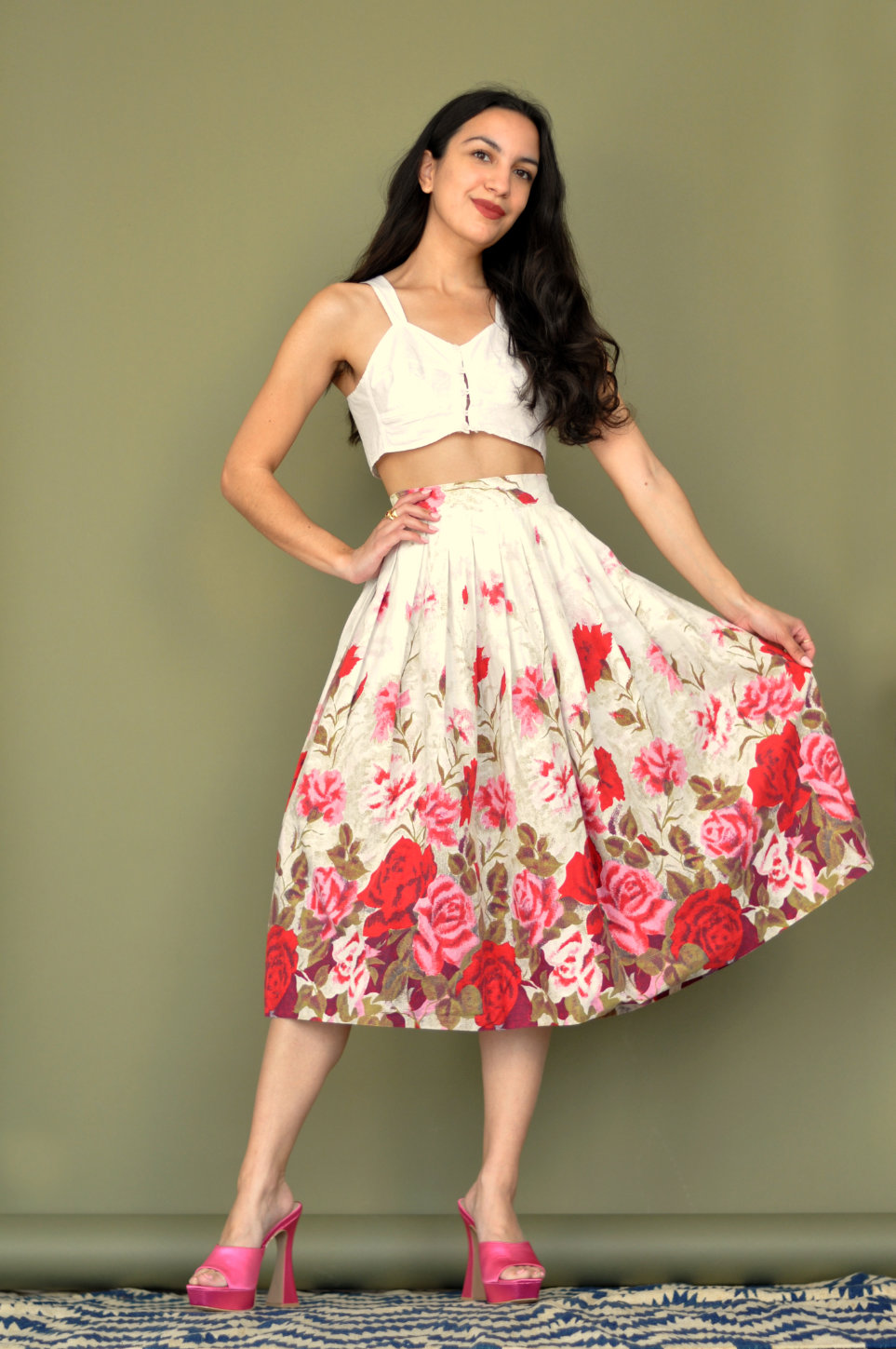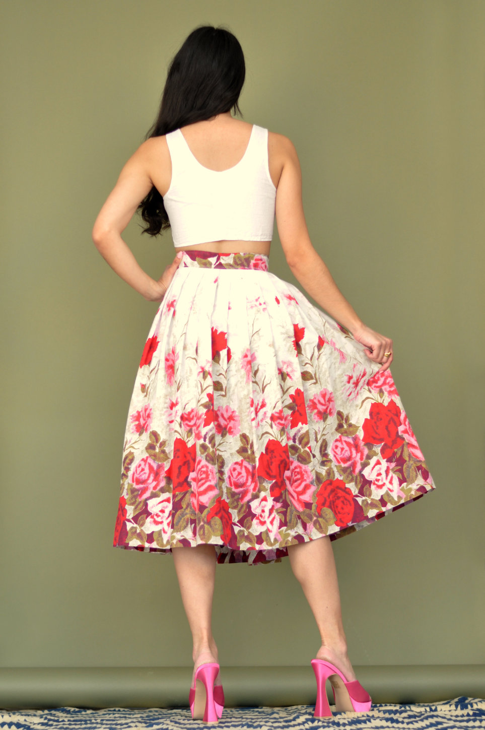 1950s Rose Border Print Novelty Skirt